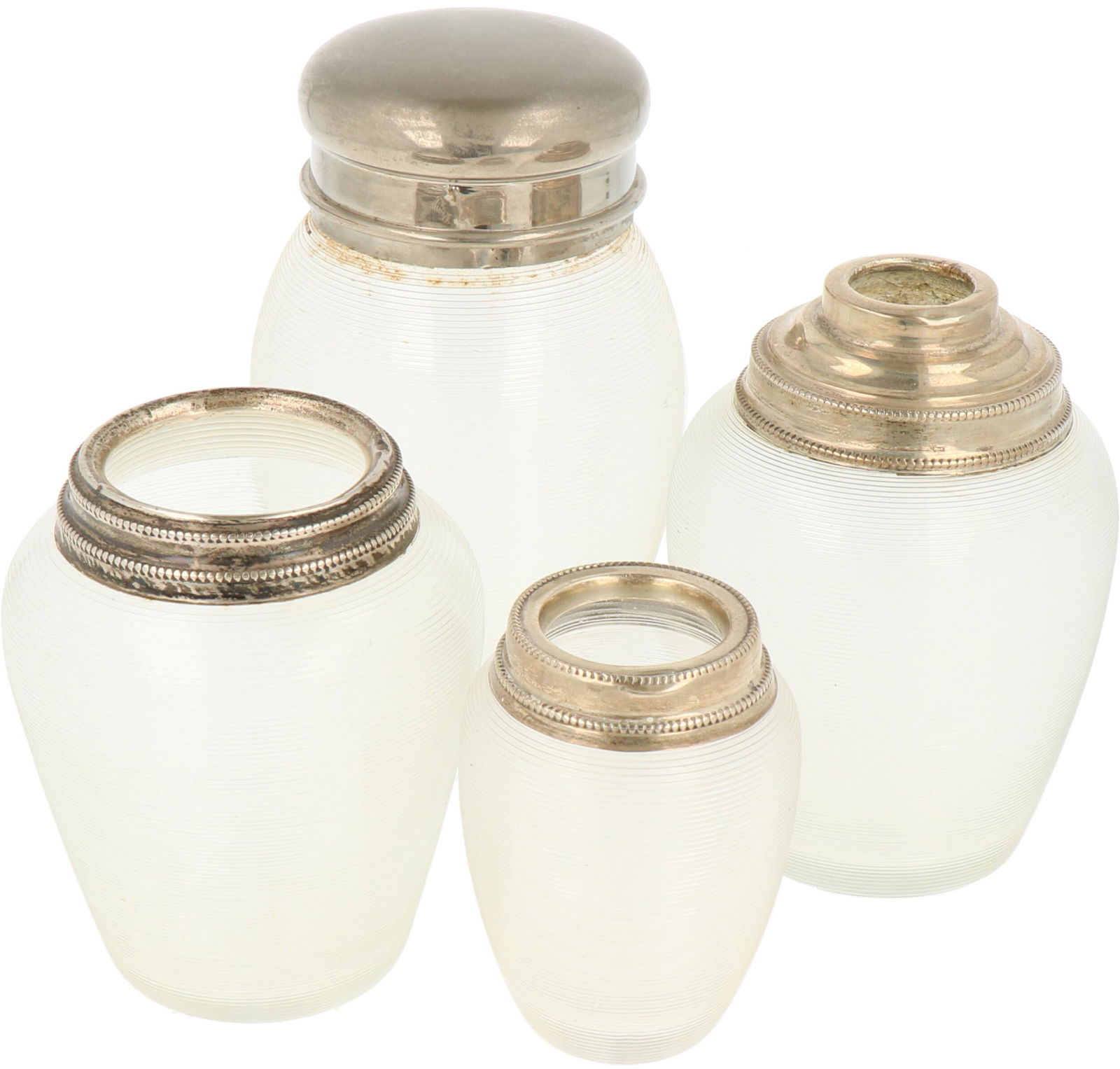 Lot Of Seven Weighted & With Glass Sterling Silver Items5 days Left4 pc Lot Victorian U.S. Glass "Coin Glass"5 days LeftLot of sterling silver dresser accessories, including various covered glass jars and scent bottles.6 days LeftLot of Five C.F. Monroe "Wave Crest" Glass PiecesMar 14, 2026LOT OF SILVERPLATE, MIRROR AND MORE4 days LeftMeriden, Imperial Silver & Others Assorted 9pc LOT3 days LeftLot of Five Sterling Silver & Crystal Powder JarsMar 04, 2026Baccarat, Val St Lambert & Orrefors Crystal 4pcs3 days LeftThree Glass and French Silver Dresser Jars, Bush Family Provenance2 days LeftSTERLING LIDDED GLASS DRESSER JARSMar 06, 20263PC STERLING SILVER TOPPED GLASS VANITY JARS2 days LeftSet of 27 crystal glass vessels with silver lids. Mostly England.5 days Left6 Miniature Silver Boxes & VinaigretteMar 14, 20263 Gustave Keller French Silver Mounted Engraved Glass Perfume Bottles c1900Mar 15, 2026Mid-Century Modern Cut Crystal Table Lighters, 5May 07, 2026FOUR CLEAR GLASS FINGER LAMPS 19th Century Heights from 4.75" to 6.25".Mar 04, 2026