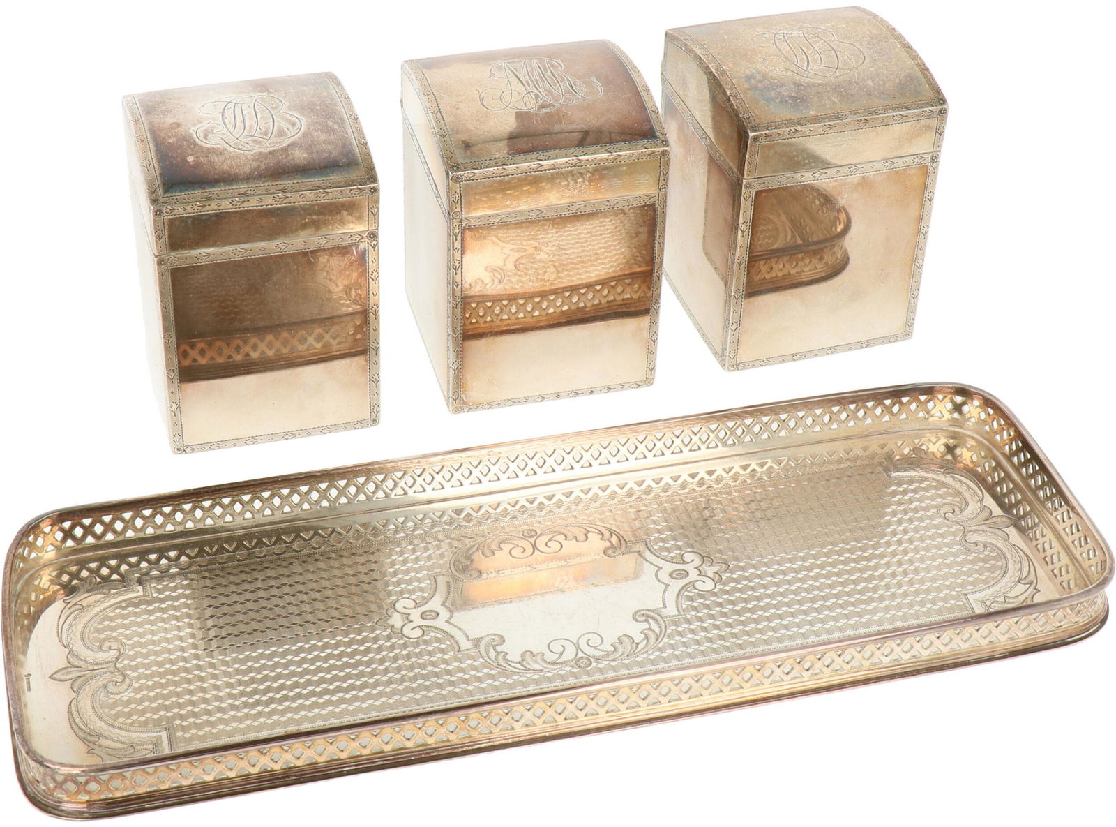 Sterling Silver Assorted Tableware Lot, Including Tray, Shakers, & Spoon6 days LeftDUTCH AND ENGLISH BRASS TOBACCO BOXES, LOT OF FOURMar 06, 2026STERLING SILVER NUT DISHES LOT1 day Left5 ANTIQUE AND VINTAGE ST SILVER ASSORTED ITEMS1 day LeftLOT OF SILVERPLATE, MIRROR AND MORE5 days LeftSilver Cigarette Cases4 days LeftVintage Silverplate Tidbit Handled Dish & Silvertone Candleholders1 day LeftPair Vintage Silver Plated Trays With Box4 days LeftENGLISH AND ISRAELI SILVER PLATED SERVING TRAYSMar 01, 2026A Group of Three Metal TraysFeb 28, 2026Six Pieces US Navy Silver Plate, Jimmy Carter Provenance4 days Left5 Metal Tobacco & Snuff BoxesMar 14, 2026Silver Plate Lidded Boxes Plateau Tray and Brass Stamp Box (5)Mar 28, 2026Grouping of Six Silverplate Serving Trays, 20th CenturyMar 07, 2026A PAIR OF GEORGE III SILVER SHAPED OVAL TEA CADDIES, AARON LESTOURGEON, LONDON 1781Mar 03, 20265 Miniature Silver BoxesMar 14, 2026