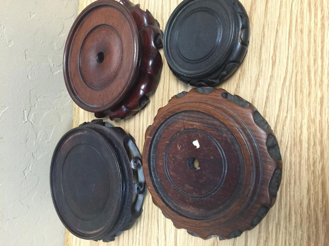 4 19th century Chinese carved wood stands. Large round 7in diameter. Elaborate stand 7 W x 6.25in.Tremont Auctions4.6(313)$150(2 bids)6 days Left