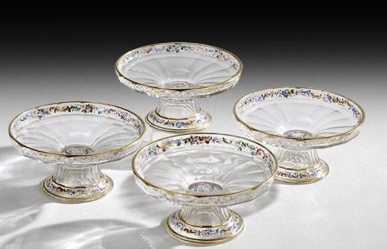 4 SIGNED ENAMELLED LOBMEYR TAZZAS
