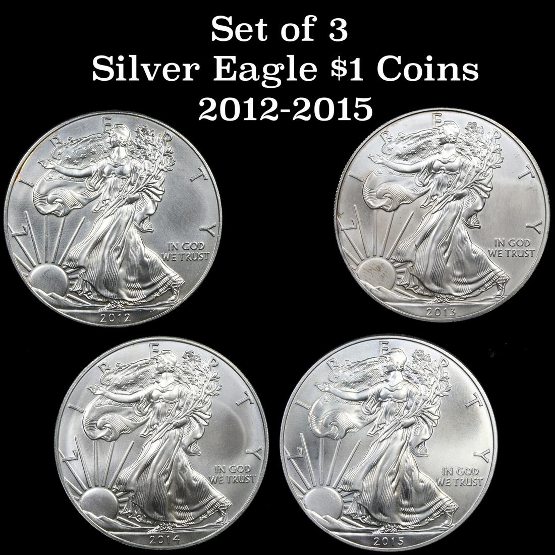 4 Silver Eagle $1 coins 2012-2015 Grades
