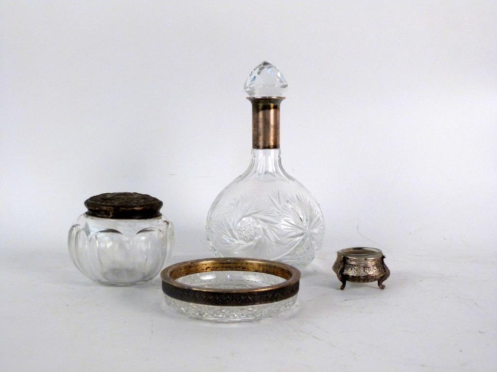 4 Silver Mounted Glass Articles