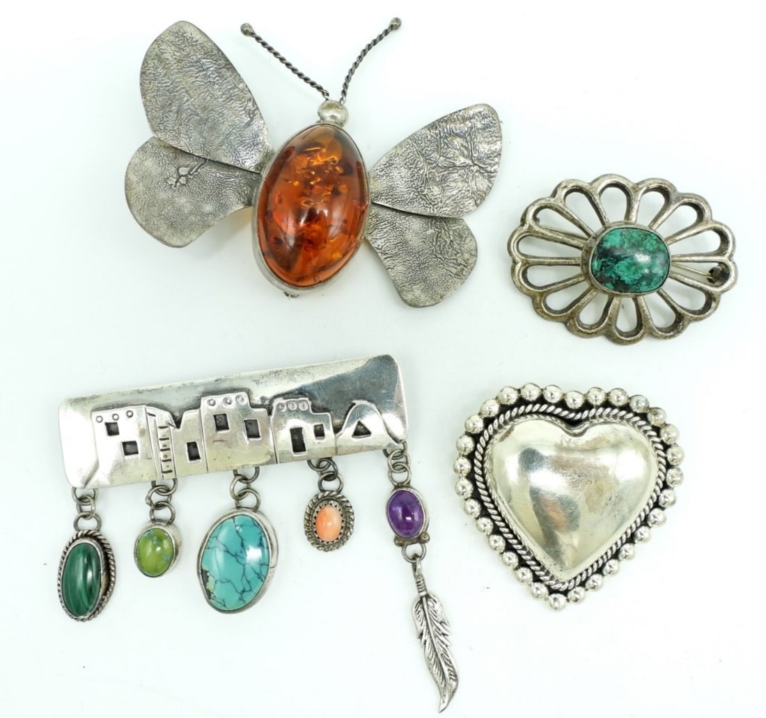 (4) STERLING BROOCHES