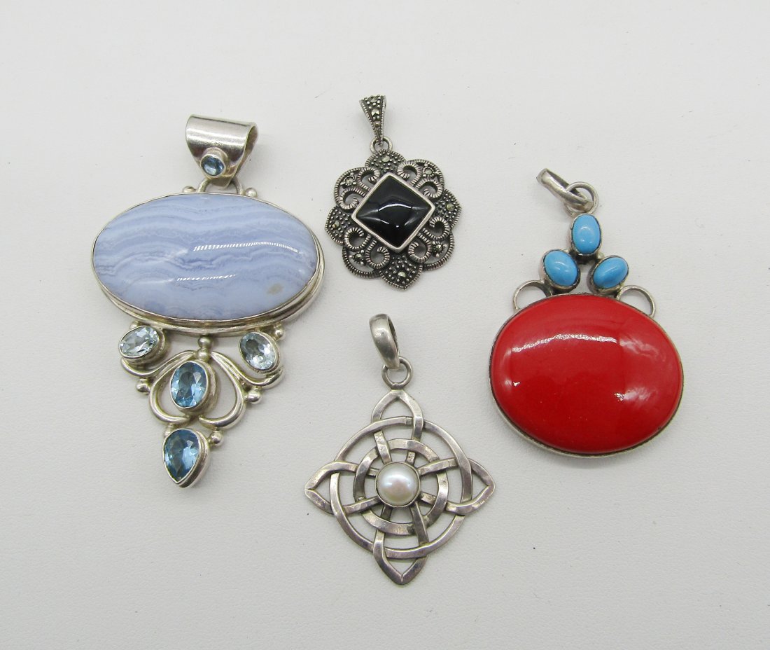 4 sterling silver pendants