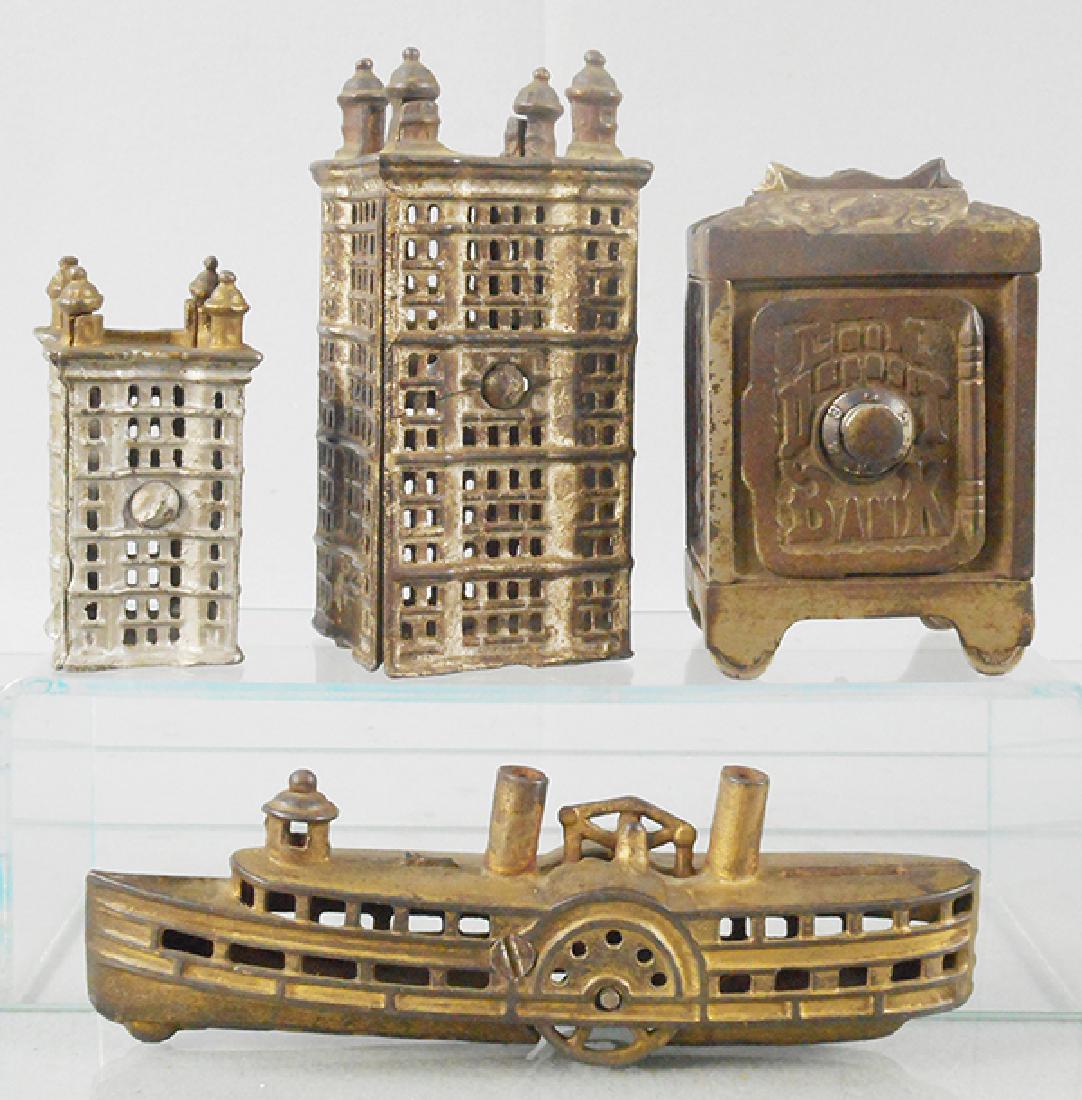 SoldFour A.C. Williams cast iron building still banks,Four A.C. Williams cast iron building still banks, tallest - 4''.See Sold Price