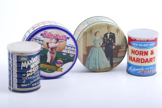 (4) Tin Containers with Lithographic Artwork