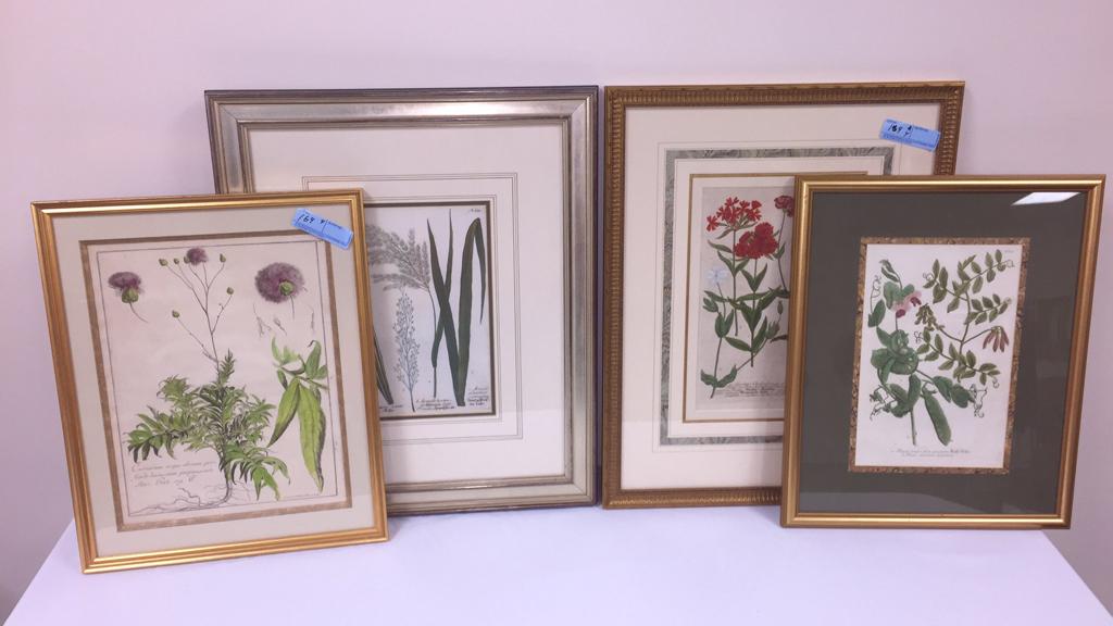 Eclectic collection of four botanical and floral art prints