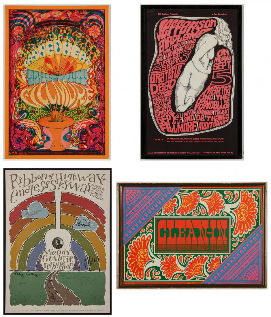 Four psychedelic Bill Graham and Family Dog concert posters.Potter & Potter Auctions4.6(609)$50(1 bid)Mar 26, 2026