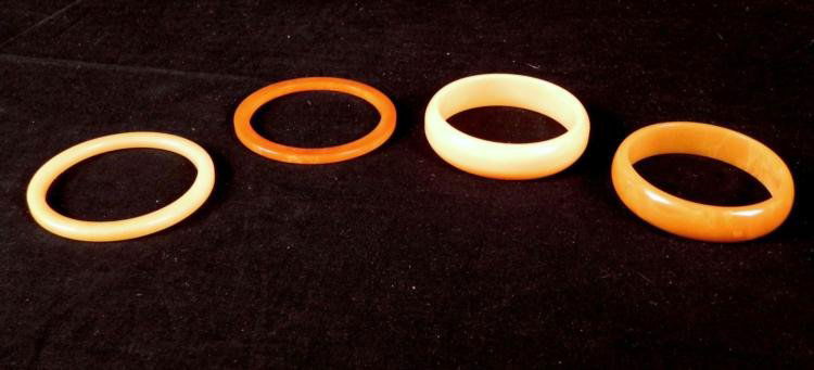 4 Vintage Yellow / Caramel Bakelite Bangles Bracelets