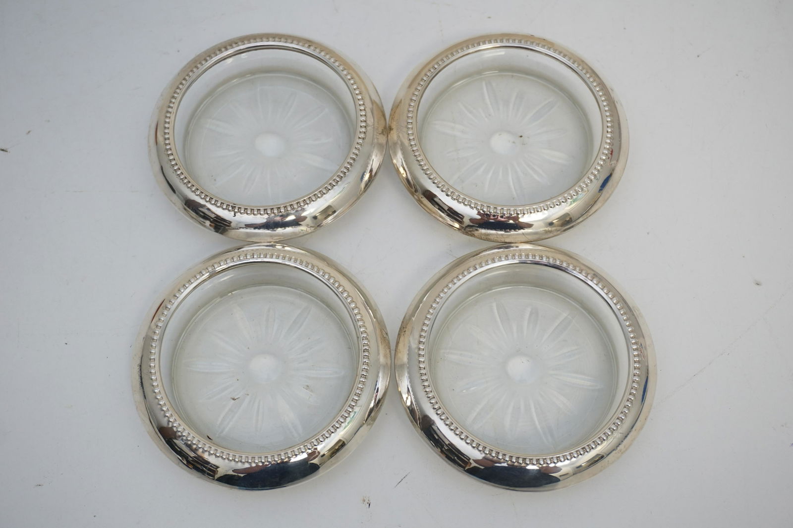 4 WALLACE STERLING RIM COASTERS
