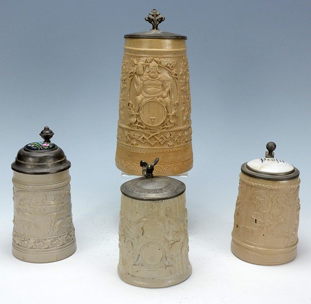 4 Westerwald Stoneware Steins