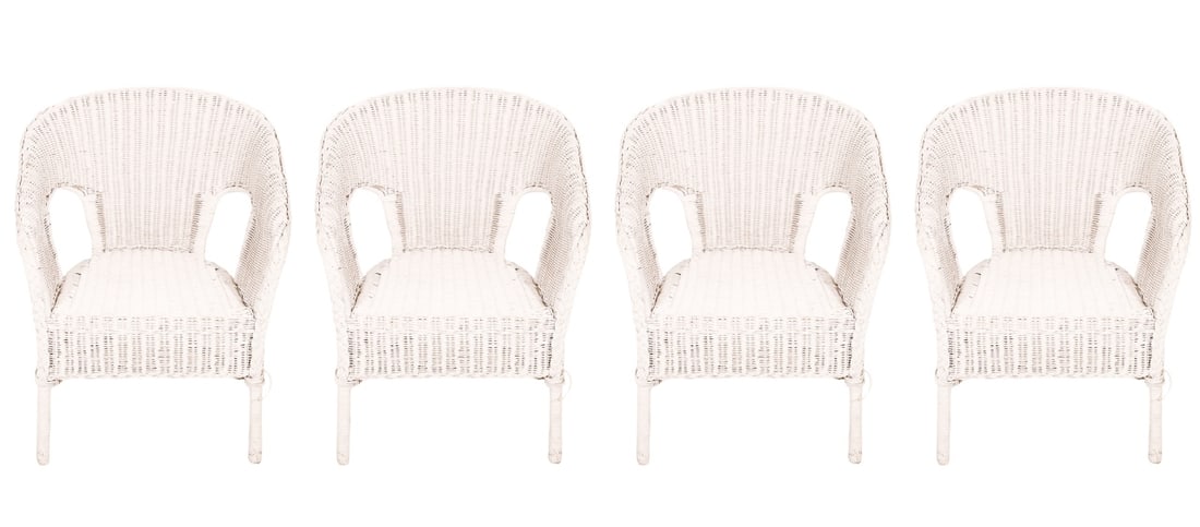 4 White Wicker Chairs with Original Paint
