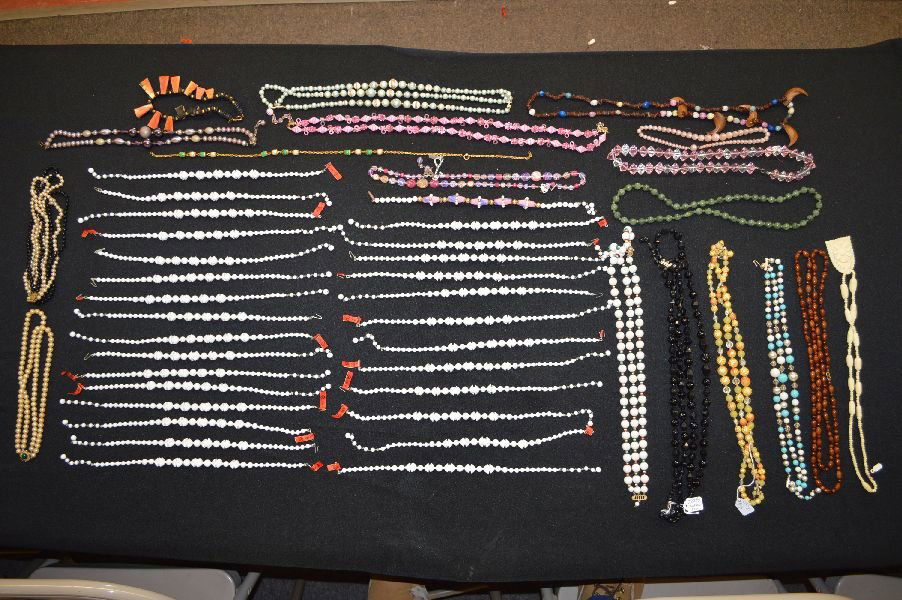 40+ ASSORTED BEADED NECKLACES AND BRACELETS