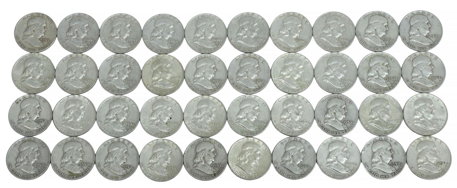 (40) U.S. FRANKLIN HALF DOLLARS, 1959