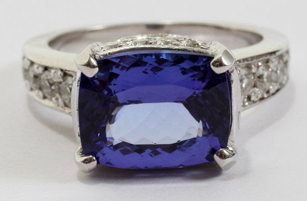 4.00CT TANZANITE & 1.50CT DIAMOND RING,