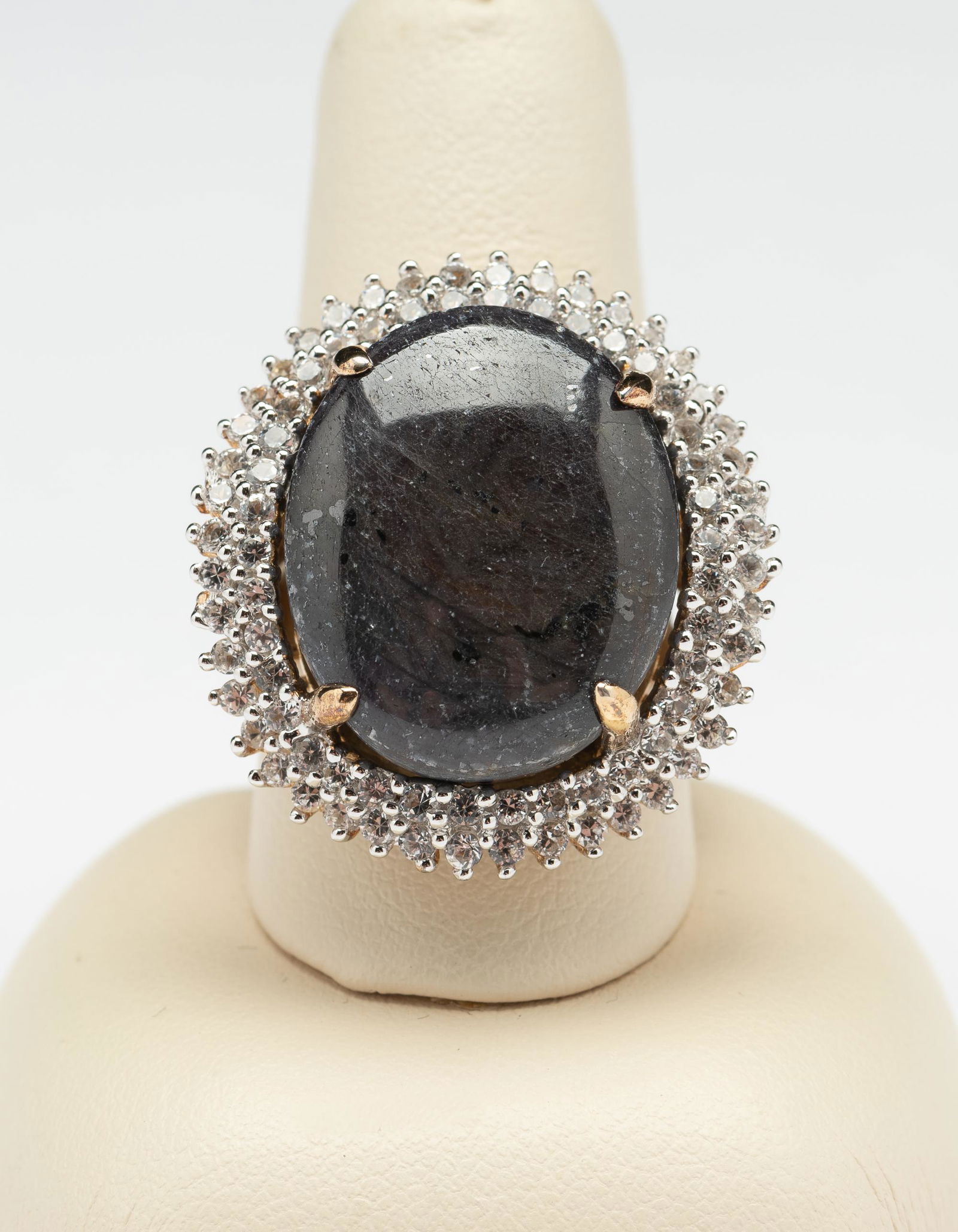 Sold40.55 Ct Ruby & White Sapphire Ring GLASterling setting with 40.55 carat star ruby and 1.9 CTW white sapphires. Size 8.5. Includes AIG appraisal report. IMPORTANT: Before bidding, please read the terms and conditions. When you registered fSee Sold Price