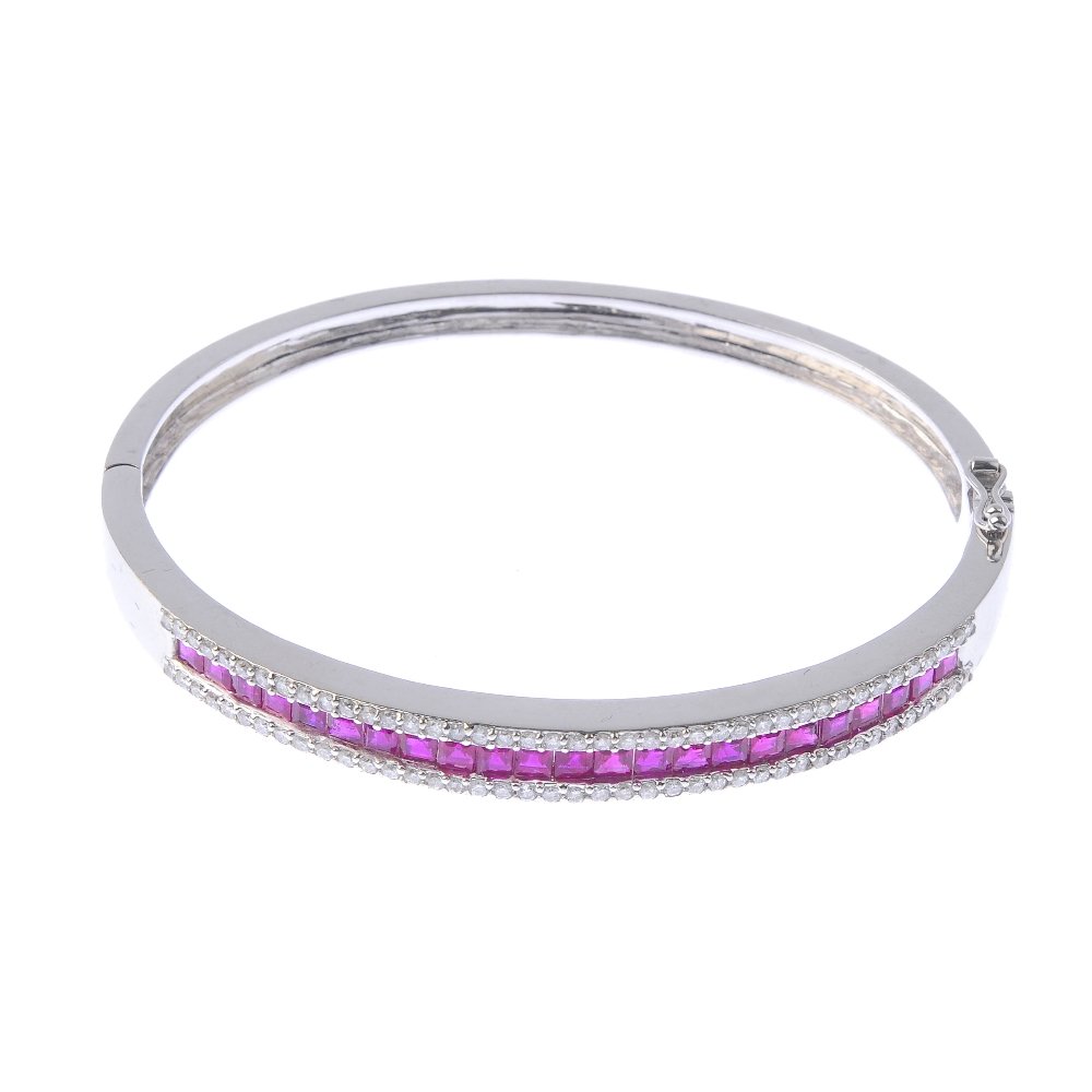(4073-3-A) A ruby and diamond hinged bangle. The