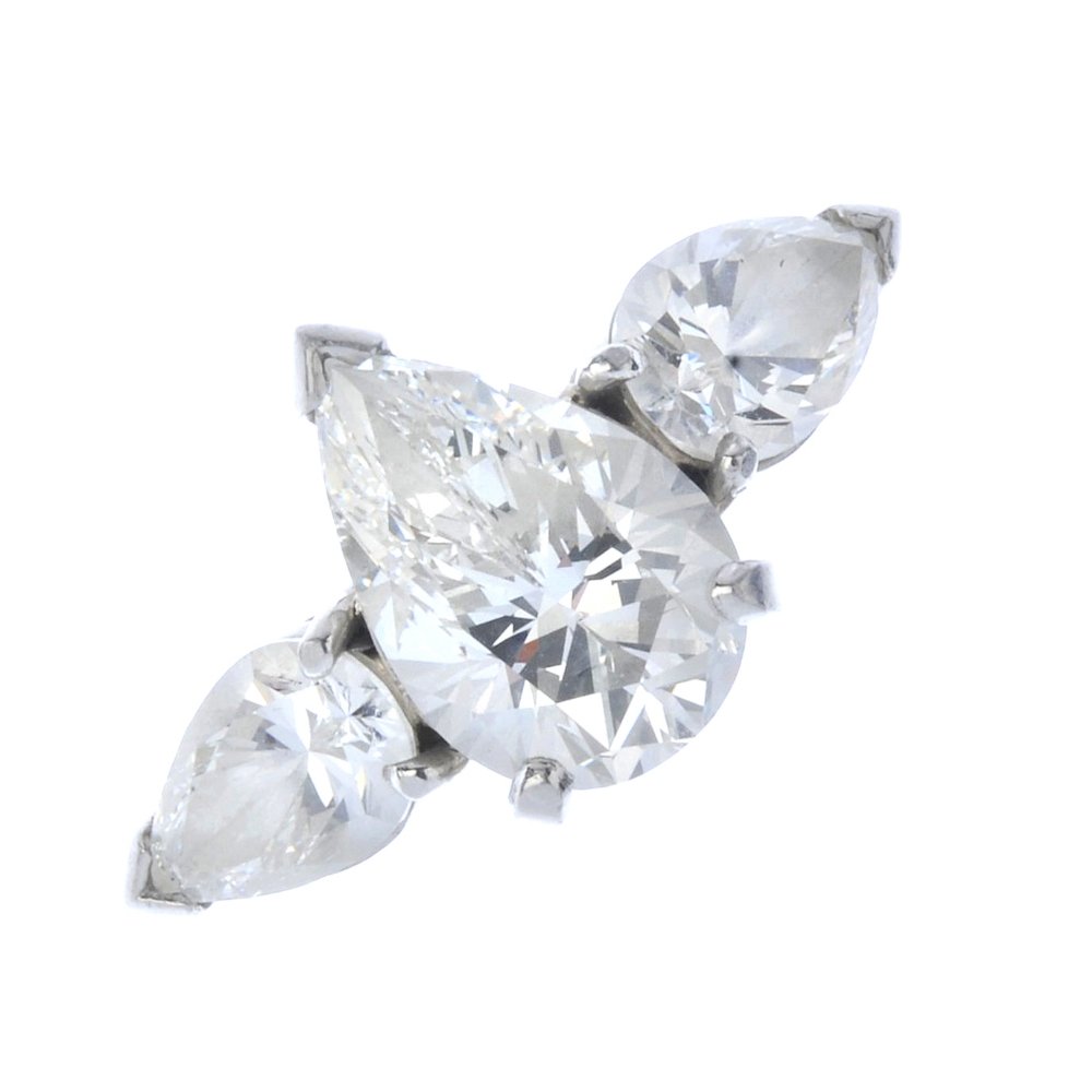 (4157-1-A) A diamond three-stone ring. The pear-shape