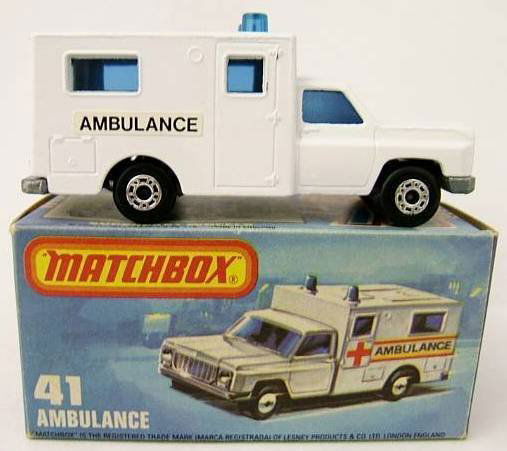 Scale model of US M3A1 Half-track personnel carrier.Matchbox Series No 14 - Lomas AmbulanceFeb 25, 2026GROUP OF FOUR VINTAGE COLLECTIBLE TOYS IOB4 days LeftI00545 A 1968 Official Matchbox Series No. 41 Collector's Case and Collection of Die-Cast Vehicles7 days LeftVintage Matchbox Official Collectors? Carry Case with Die-Cast Cars4 days LeftRetro Surf BusMar 02, 2026USSR RAF 2203 POLICE AND AMBULANCE DIE CAST MODELSFeb 21, 2026Matchbox New 42 - Mercedes Container TruckFeb 25, 2026Humble Exxon 997 Toy Tanker TruckMar 04, 2026Matchbox New 30- Artic TruckFeb 25, 2026TIPPCO CAMOUFLAGED AMBULANCEFeb 27, 2026Matchbox No 57 - Wild Life Truck - Rola-matics - 1973Feb 25, 2026I00019 A Pair of Hess Toy Vehicles including 2001 Helicopter and Fire Truck7 days LeftMatchbox - MOKO - No 31 - American Ford Station WagonFeb 25, 2026Bandai, VW Bus AmbulanzFeb 28, 2026ASC, Ford Police Siren Patrol CarFeb 28, 2026