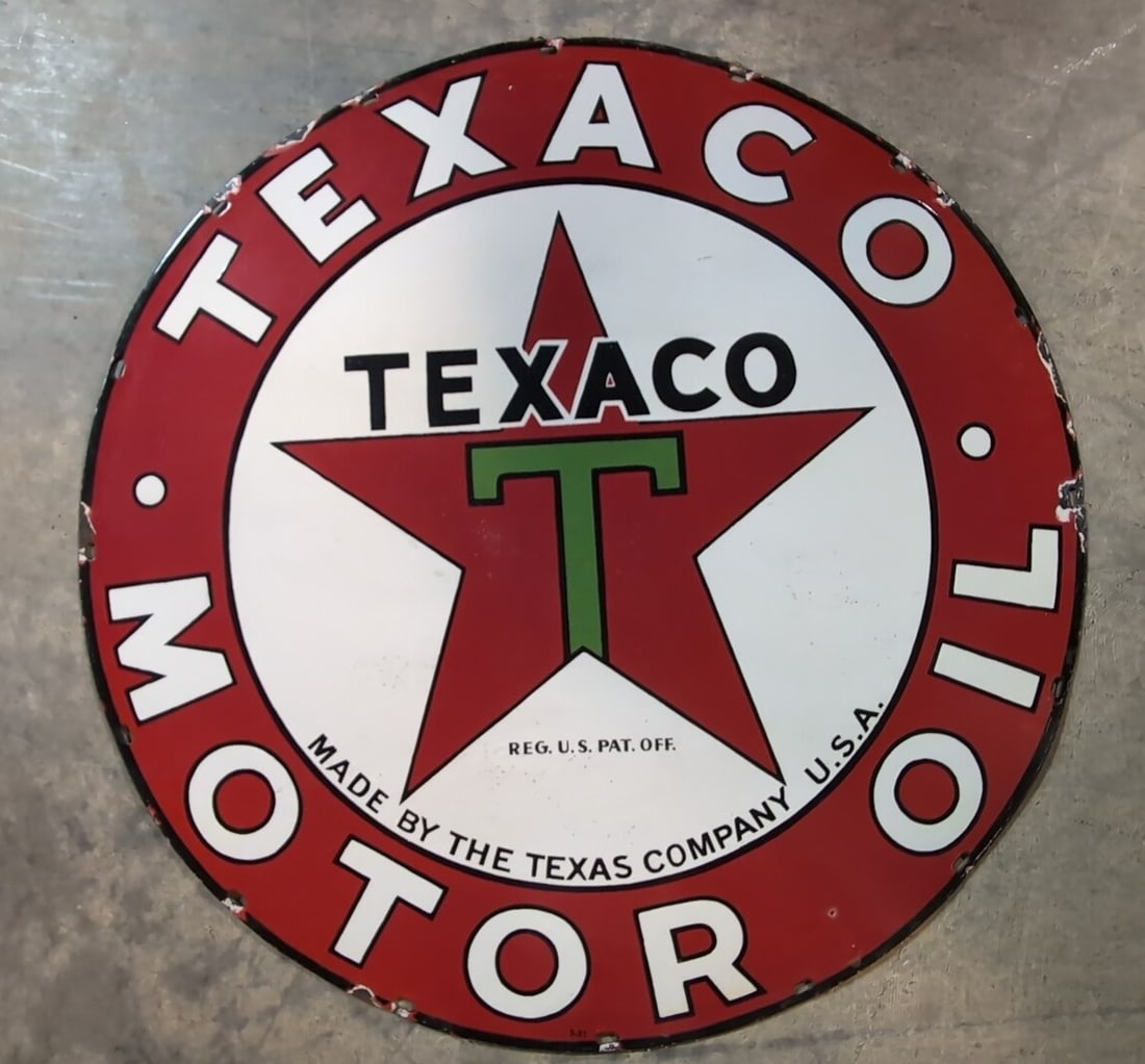 Texaco Single-Sided Porcelain Round SignMar 14, 2026Texaco Single-Sided Porcelain Round SignMar 14, 2026Texaco Single-Sided Porcelain Round Sign 15"Mar 14, 20266FT Texaco Double Sided Porcelain Dealer SignMar 21, 2026Texaco SSP Lubester SignMar 20, 2026Texaco SSP Lubester SignMar 21, 202672" Texaco DSP Porcelain Advertising SignMar 21, 2026Texaco 15" Porcelain SignMar 25, 20261920s Texaco Porcelain Gas Pump Plate 8"Mar 14, 2026Texaco Porcelain Gas Pump Plate 8"Mar 14, 2026TEXACO PORCELAIN SIGNMar 10, 2026Texaco Gasoline Service Station 5’ Sign5 days LeftTexaco Gasoline Motor Oil 42" SSP SignMar 21, 2026Texaco (black-T) Star Logo Porcelain Sign (TAC)Mar 23, 2026Outstanding Texaco Porcelain Lubster Paddle W/ Black "T" LogoMar 25, 2026Texaco (black-T) Star Logo Porcelain Sign (TAC)Mar 25, 2026