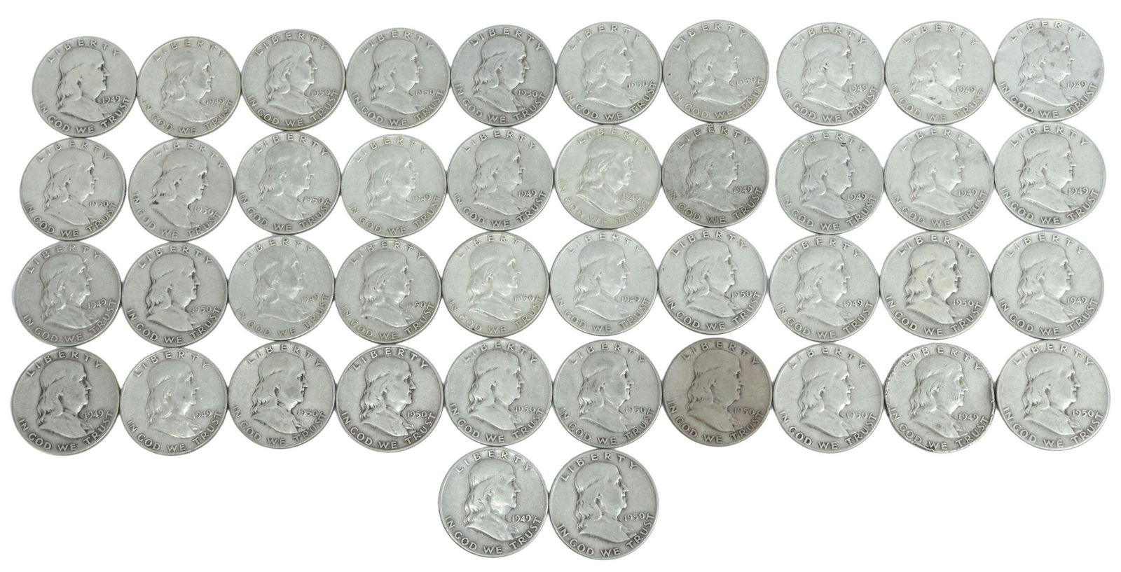 (42) U.S. FRANKLIN HALF DOLLARS, 1949, 1950