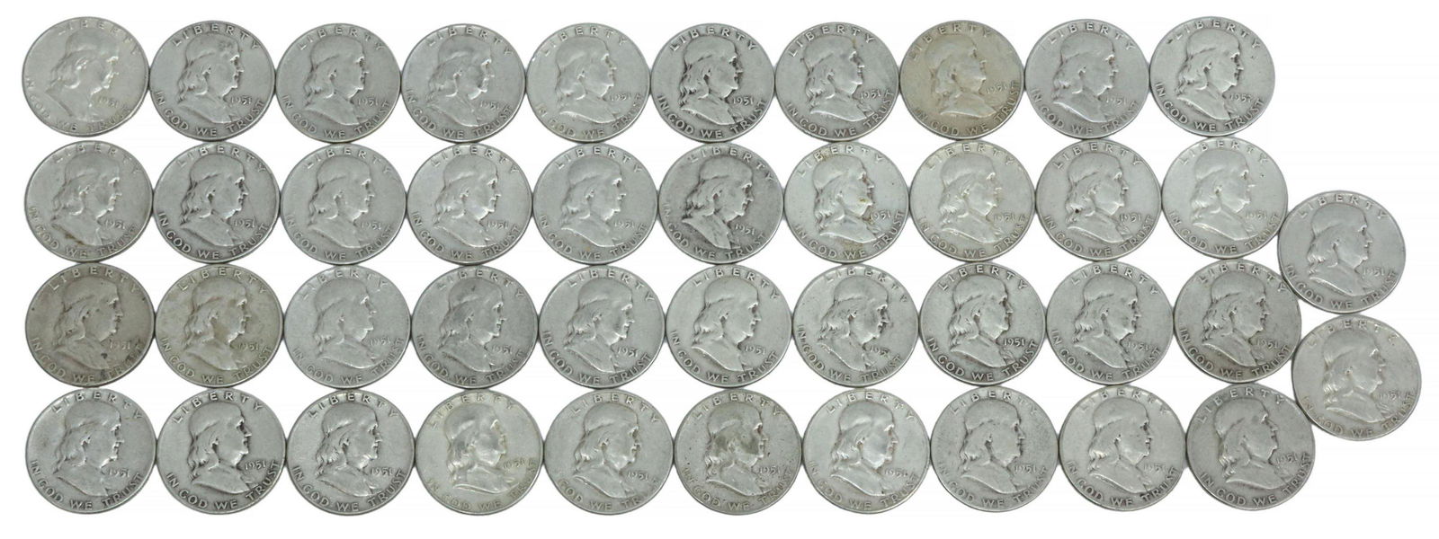 (42) U.S. FRANKLIN HALF DOLLARS, 1951