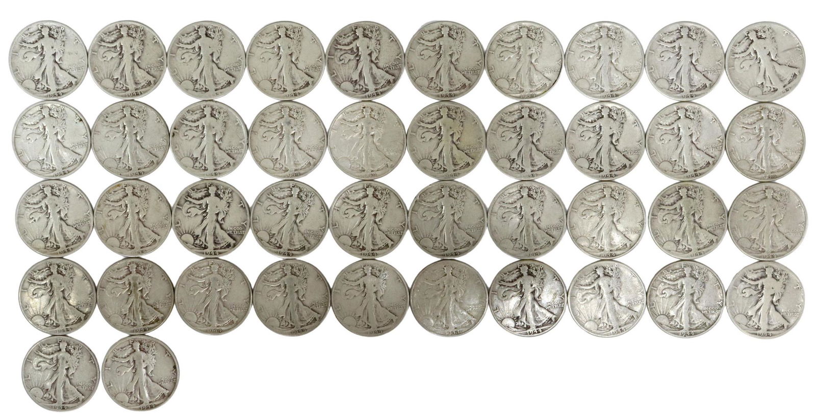 (42) U.S. WALKING LIBERTY HALF DOLLARS, 1944