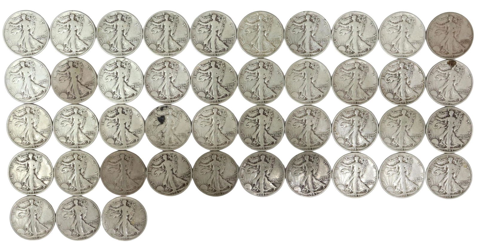 (43) U.S. WALKING LIBERTY HALF DOLLARS, 1943