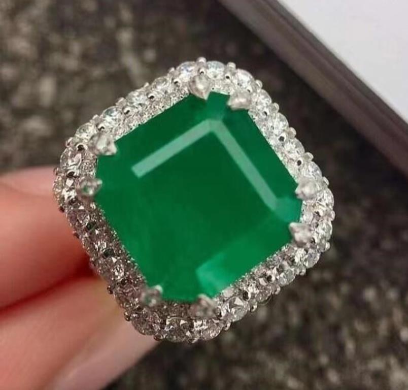 14k Gold 7.2 Ct Vivid Green Natural Emerald & Diamond Ring