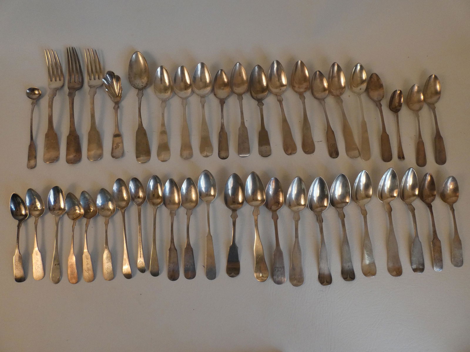 Large Assorted Lot of Silver-Plated Cutlery – Rat Tail & Bead Patterns – 89 Pieces19PC LOT OF STERLING AND SILVER SPOONS, 25 T.O.W.Mar 07, 2026NEW ENGLAND AND OTHER AMERICAN COIN SILVER AND RUSSIAN 0.875 SILVER TEASPOONS, LOT OF 17Mar 04, 2026Lot of Sterling Silver FlatwareMar 07, 2026Lot of 14 Sterling Silver Spoons, Assorted Patterns, 355 Grams TotalMar 15, 2026Sterling Flatware Including Mustard & Salt SpoonsMar 07, 2026Grouping of American Coin Silver Spoons4 days Left19th/20th century coin and sterling silver spoons. Largest: 6in. Total coin silver weight: 5.3 ozt.6 days Left(24) PIECE SILVER GROUPMar 05, 2026GROUPING OF COIN SILVER SPOONS4 days LeftMisc. Sterling and Coin Silver Flatware, 55 pcs.3 days LeftDominick & Haff "Rattail Antique" silver flatware.12 hrs Left106 pcs. OF AMERICAN SILVER FLATWARE, 2600g2 days Left13 Coin & Sterling Silver Spoons (Henry Harland)5 days LeftGroup of Coin Silver Spoons16 hrs Left14 Warrington and W.G. Forbes Coin Silver Spoons4 days Left