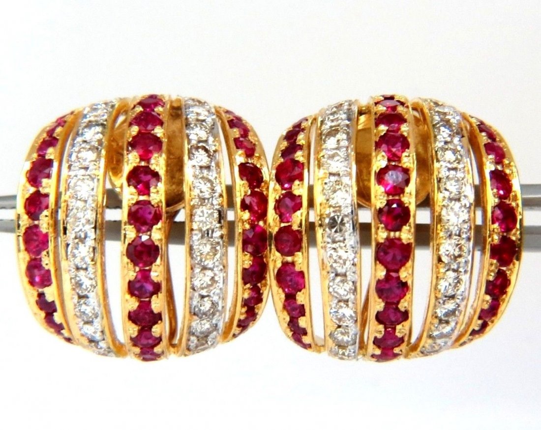 4.24ct natural red ruby diamond hoop earrings 14kt gold three row Intricate**Chairish Auctions4.5(10.3k)$2,600