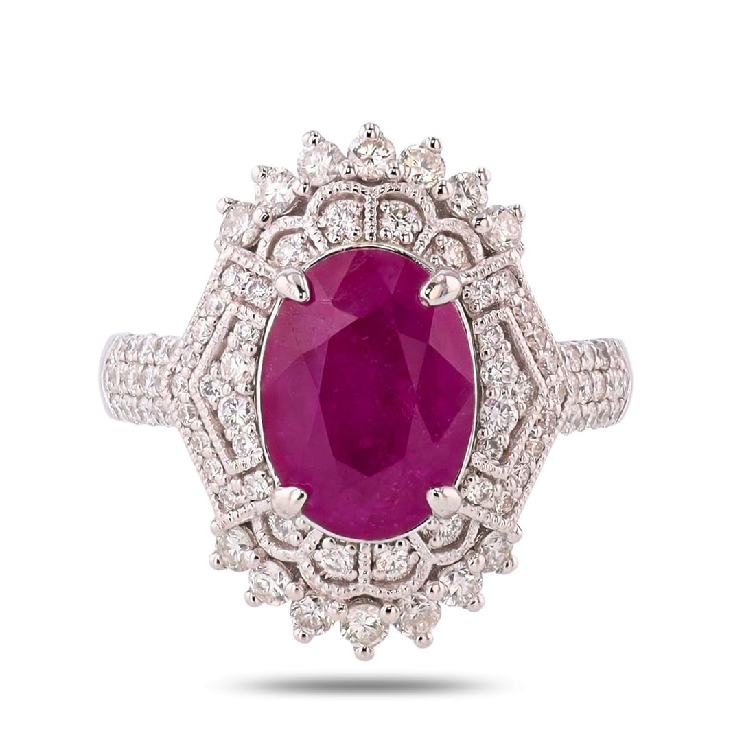 Platinum 3.50ct Ruby and 1.10ct Diamond Ring - 4.60ct. tw. Ruby - DiamondEastern European Art Gallery Inc$5005 days Left
