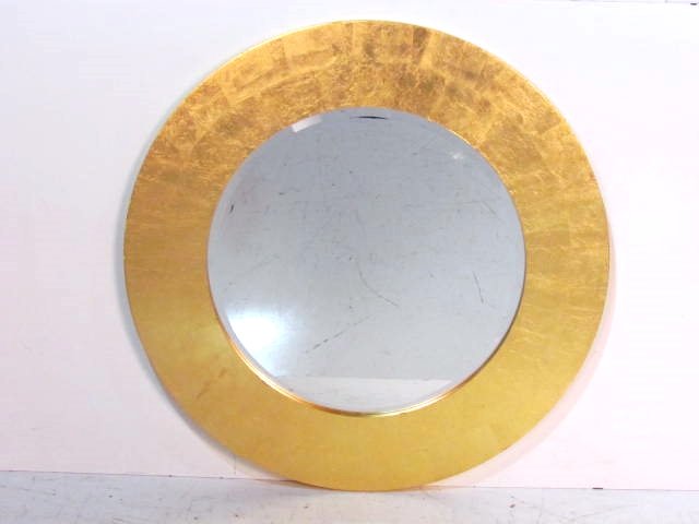 SoldModern Karl Springer Style Lacquered Gold Leaf RoundModern Karl Springer Style Lacquered Gold Leaf Round Beveled Mirror. Small loss to gold leaf, wear and rubbing to frame. Measures 48" Dia. Shipping: Third party. (estimate $300-$400)See Sold Price