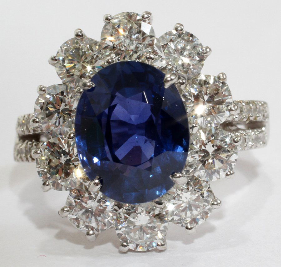 4.65CT SAPPHIRE & 2.70CT DIAMOND RING