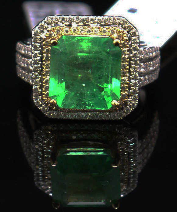 5.00ct Emerald, 1.60ctw Diamond and 18K Ring