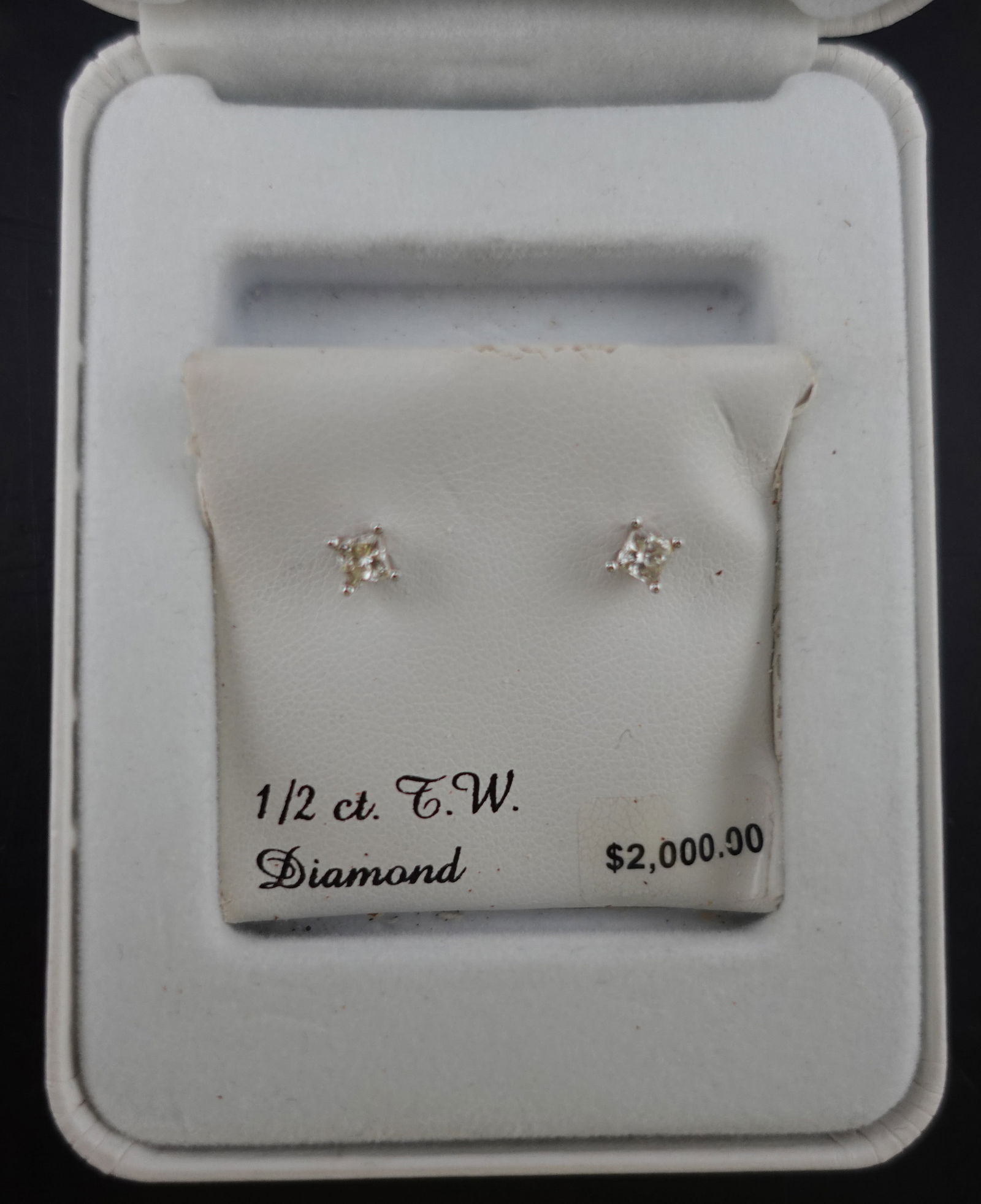 14k Gold 0.9 Ct Natural H Diamond Earrings