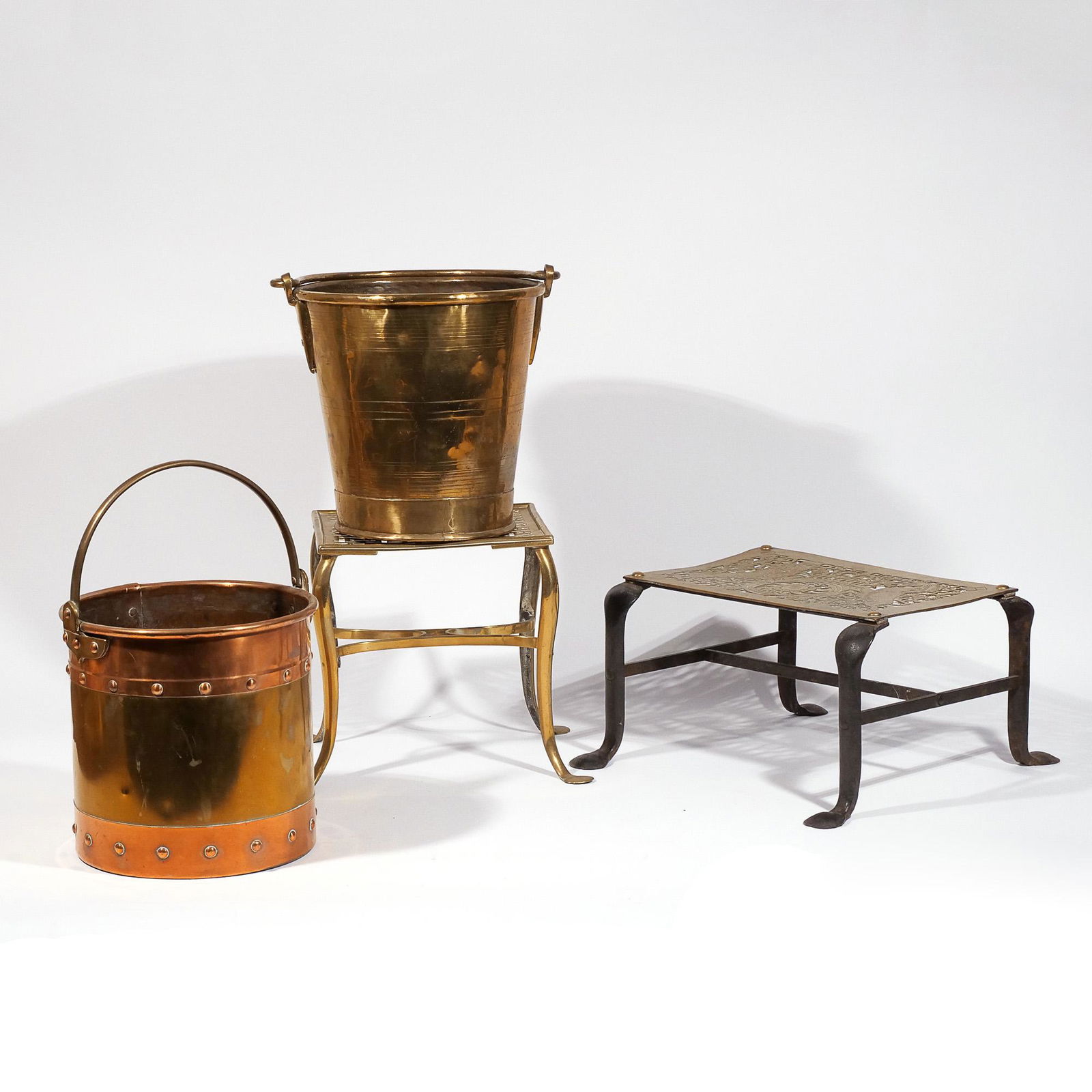 (4pc) BRASS & COPPER BUCKETS & TRIVETS