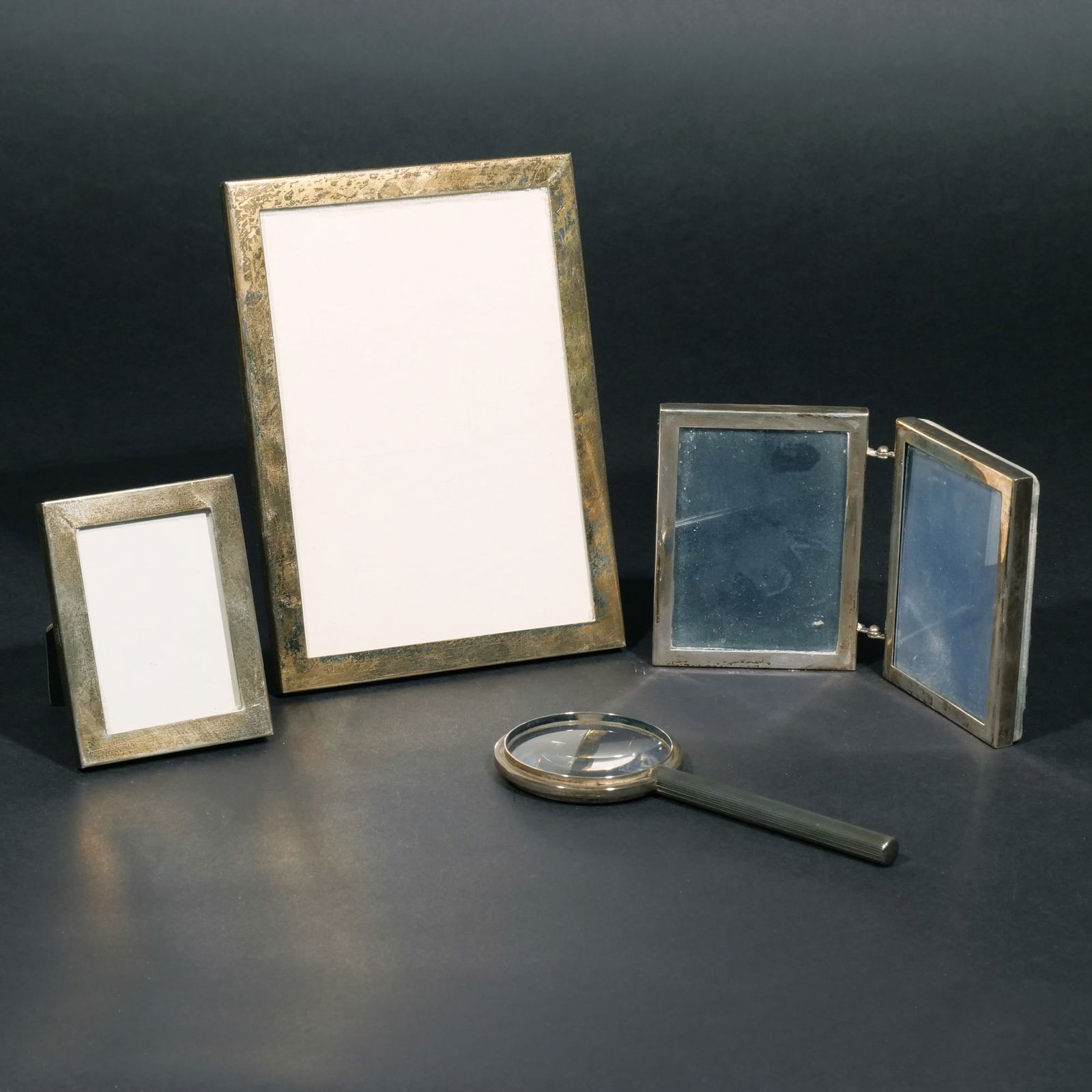 (4pc) TIFFANY & CO. SILVER FRAMES & MAGNIFIER
