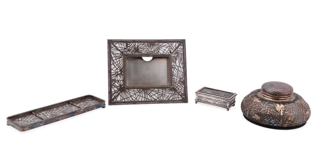 4PC TIFFANY STUDIOS PINE NEEDLE DESK SET