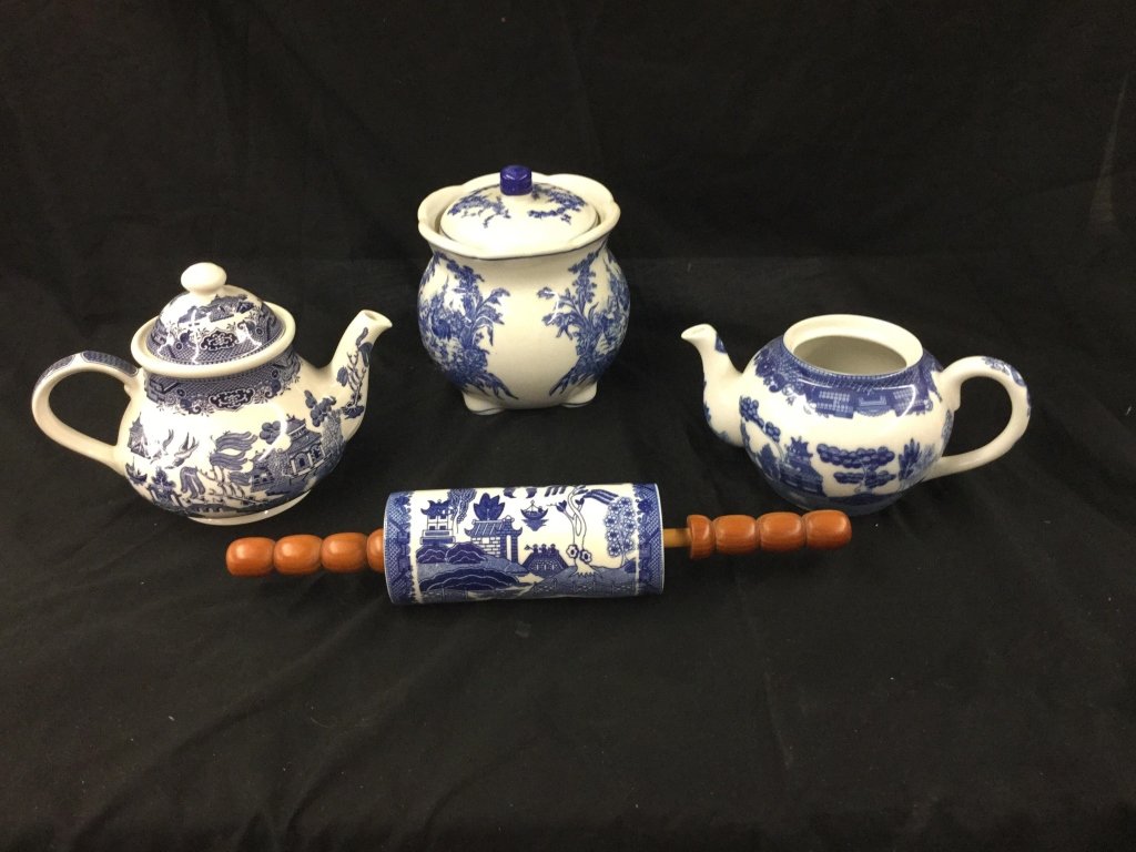 4pcs. Blue/white rolling pin tea pots (1 lid