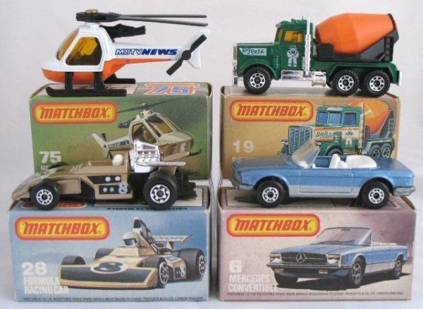 Large Lot Vintage Diecast Cars / Trucks Corgi Hot Wheels Lesney Matchbox Majorette & etcMar 02, 2026(22) 2000s Mattel Hot Wheels Assorted Collections MOC NOS5 days Left(28) 2000s Mattel Hot Wheels Various Series Diecast MOC NOS5 days LeftLot of 5 scale car Turbo x 2, Tomica, Hot Wheels and MatchboxMar 02, 2026(11) 1980s-90s Mattel Hot Wheels Diecast Assortment MOC NOS5 days Left(6) 1990s-00s Assorted Diecast, Various Mfgs - MIB-NOS5 days LeftGroup of Die-Cast Model Vehicles Chevrolet Blazer Porsche 917 Hot Wheels and Petty TransporterFeb 17, 20268 1:18 Scale Cars in very rough boxes7 1:18 Scale Cars in very rough boxes(8) 2015 Mattel Hot Wheels Pickup Truck Assortment MOC NOS5 days Left3 RC Vehicles, 1 with box, all untested(6) 2000s Hot Wheels Treasure Hunt - MOC-NOS5 days Left(4) 2000s Mattel Hot Wheels Team Transports, Car Culture NOS5 days Left2 Pre-Production Matchbox Sample Toy Car SetsFeb 28, 2026Matchbox, 9 ModelleFeb 27, 2026Matchbox No 46 - Mercedes 300 SE Coupe - SuperfastFeb 25, 2026