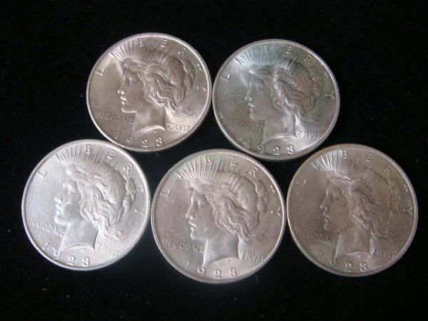 5 1923 PEACE SILVER DOLLARS, Uncirculated Condition