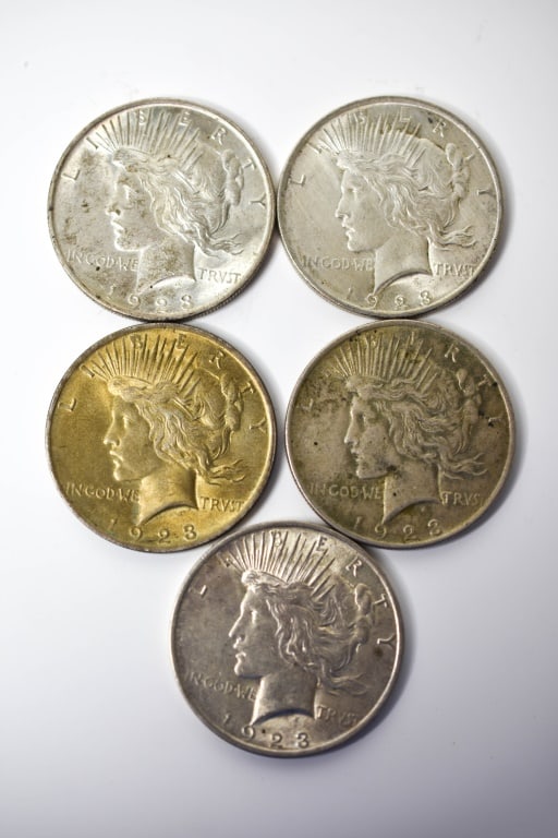 5 1923 Peace Silver Dollars