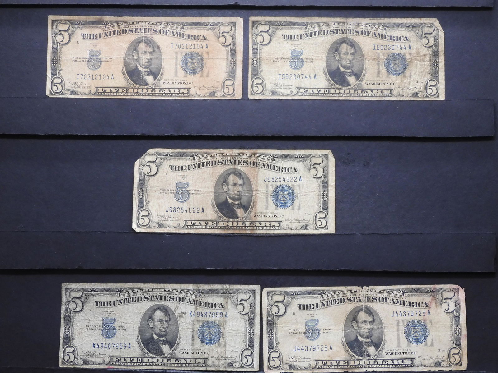 5 1934A Five Dollar Silver Certificates