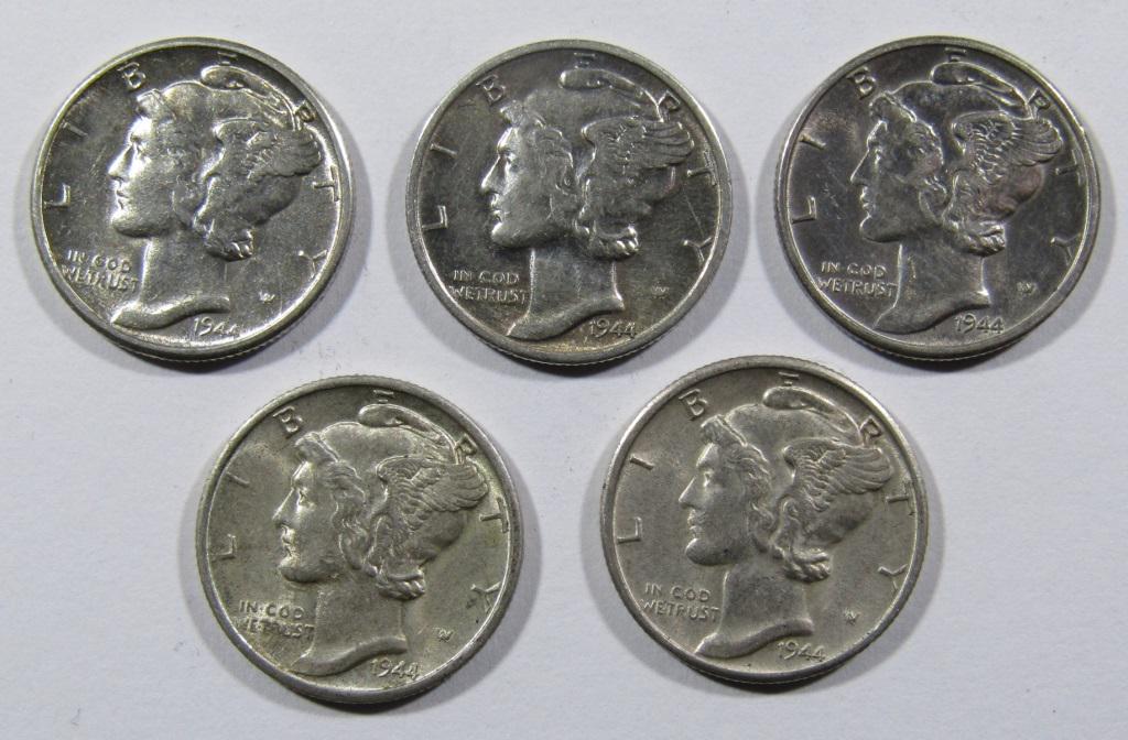 (5) 1944-D MERCURY DIMES AU/BU