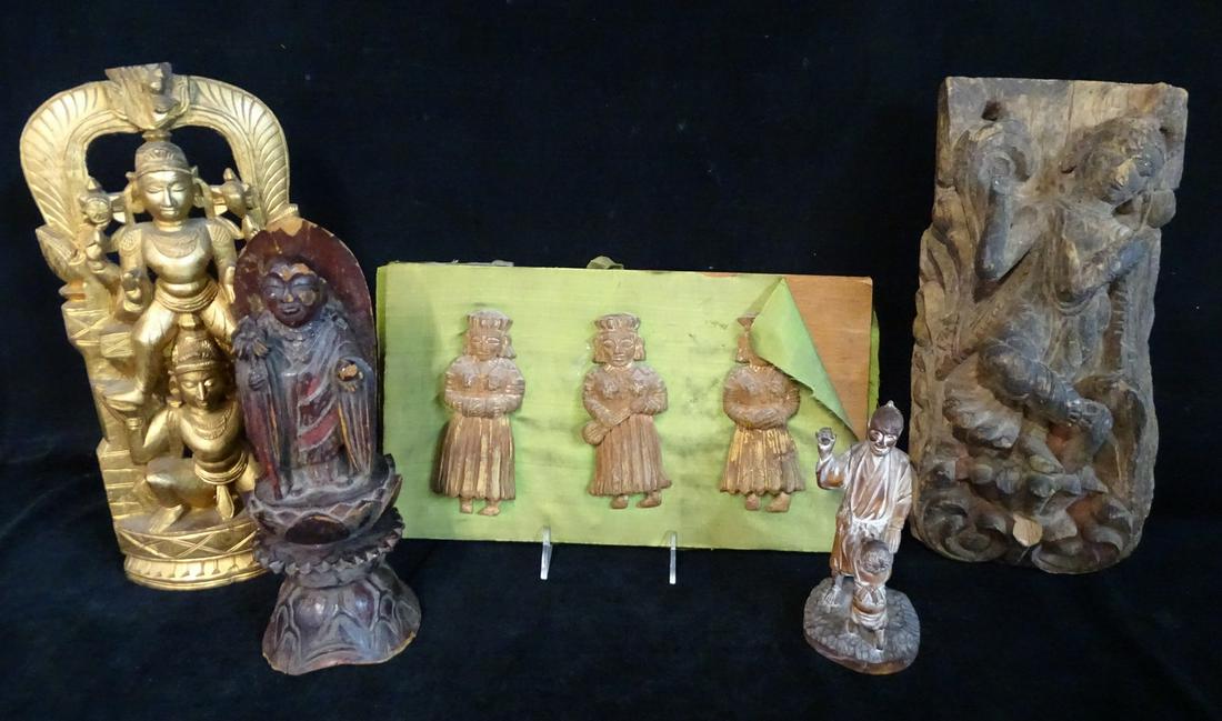 5 ASIAN WOOD OBJECTS