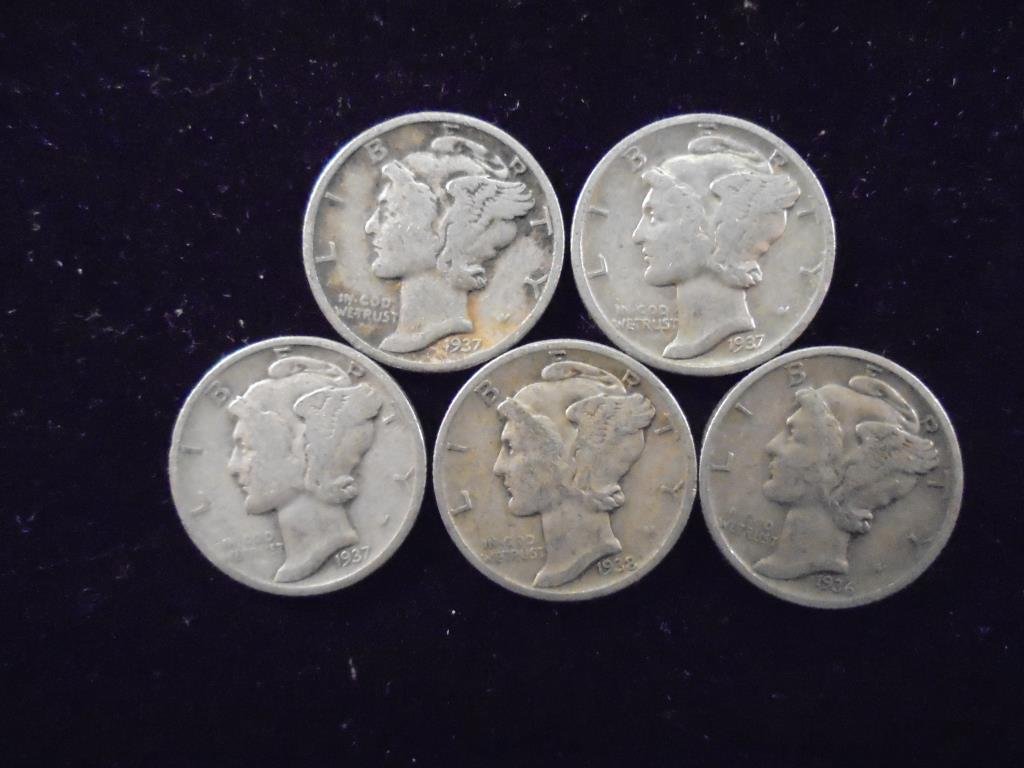 5 ASSORTED MERCURY DIMES