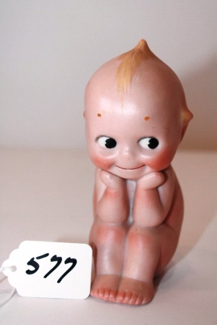 5" BISQUE THINKER - RED GERMAN SHIELD FEET SIGNED. VERY