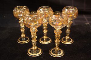 5 Bohemian Enameled Wine Hocks Goblets