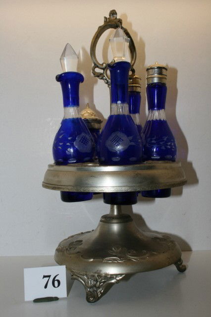 5 Bottle Castor Set w/Cobalt Blue Bottles
